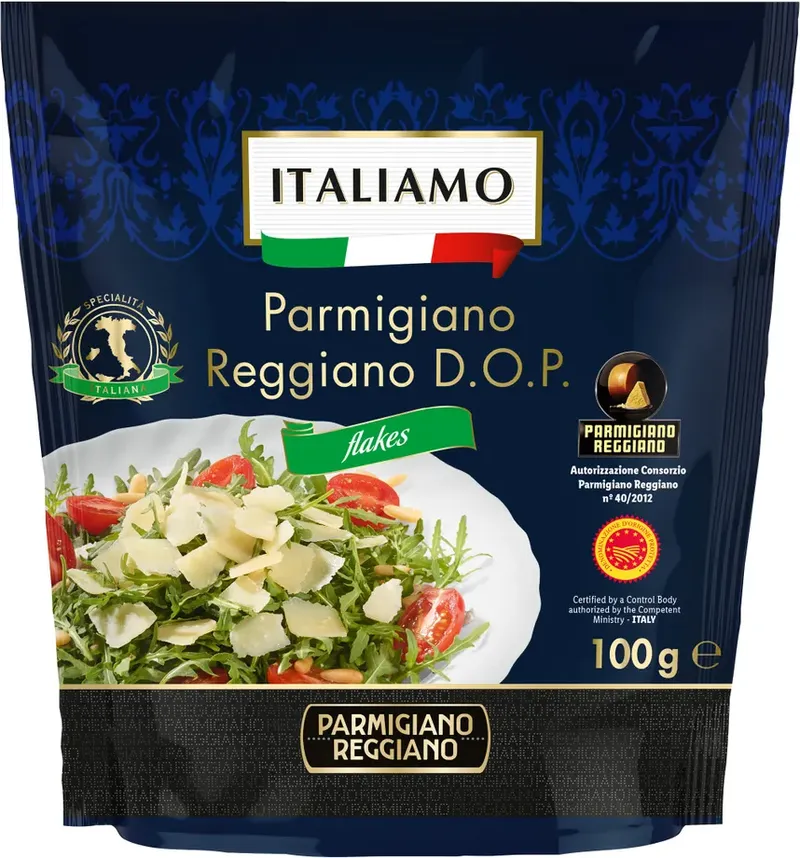 100 g/опаковка / Период на зреене: мин. 14 месеца Настъргано или на люспи