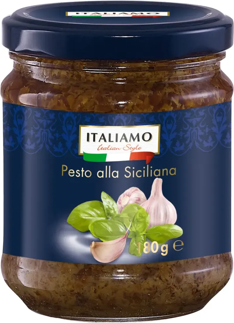 180 g/опаковка / Трапанезе със сушени домати, босилек и бадеми или Сицилиано с босилек и чесън