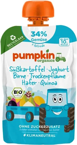 От 10 месеца.Без добавена захар (естествено съдържание на захар), без добавки, без консерванти, веган. Хранителни стойностиза 100g Енергийна стойност 414 KJ/99 kcal Мазнини 3,1g - от които наситени мастни киселини 1g Въглехидрати 15g - от които захари 6,7g Белтъци 2,2g Сол 0,09g Влакнини 0,9gСъхранение: на сухо и хладно място, защитено от директна слънчева светлина, при максимална температура 25°C. След отваряне съхранявайте в хладилник в рамките на един ден.Изображението върху опаковката е символично.